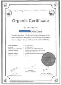 種植方式:  大樹遮陰, 自然農法,取得Myanmar MOGPA組織 的認證 . 認證文件編號:MOGPA-1909-01